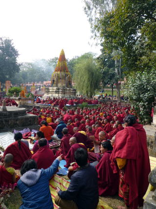 私たちが訪れた日は、物凄い数のチベット僧が集まっていました。 なんとチベットの高僧カルマパ17世の説法がある日だったんです。 2005年も「間もなくダライ・ラマが近くで説法を行うのでチベット僧が集まり始めている」と聞きました。 もしかしたら年末年始にはチベットの高僧がブッダガヤで説法が行うことになっているのかもしれません。