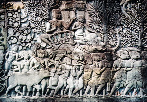 古いテラスの彫刻です。神々や王宮の様子でしょうか。