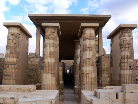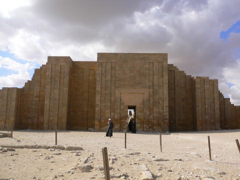 サッカラの階段ピラミッド カイロの西南25キロにサッカラの階段。ピラミッドはあります。 写真は南側から見たピラミッド。手前はセド祭(王位更新祭)の神殿。 ![]()