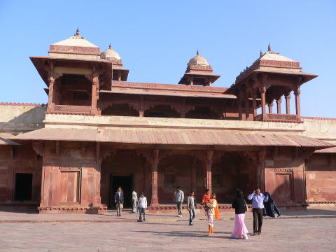 ファテープル・シークリー アグラ郊外のファテープル・シークリー わずか14年間都だった場所 アクバル大帝の遊び心で満ちている気がします。 2005年12月訪問 ![]() 池から眺めた宮殿区域
