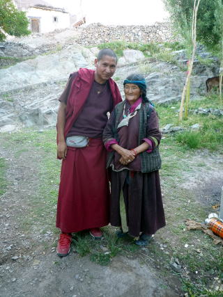 上を見上げたら、吹き抜け部分にも美しい曼荼羅。 ![]() アルチ僧院が素晴らしかったのはもちろんなのですが ツァツァプリ僧院も素晴らしかった。 鍵番のおじいさんは85歳 25歳の時10歳年下の奥さんをもらい 幸せな人生だと語っていました。 ダライ・ラマの祝福を受けたのが誇り。 帰り道で奥さんに会いました。 かわいいおばあちゃん。 ![]() おばあちゃんの隣は我らの現地ガイド お坊さんに案内してもらうとかなり違います。 幸せな人生と語れるのは凄い羨ましい。 チベット入口に戻る 参考文献 ダライ・ラマの仏教入門(光文社 ダライ・ラマ14世著) 増補チベット密教(筑摩書房 ツルティム・ケサン 正木晃 著) 図説チベット歴史紀行(ふくろうの本 河出書房新社 石濱裕美子著) ラダック密教の旅(佼成出版社 滝雄一・佐藤健著) ラダックザンスカールトラベルガイド(ダイヤモンド社) チベット(旅行人) 基本的には現地ガイドさんの説明を元にまとめています。 |