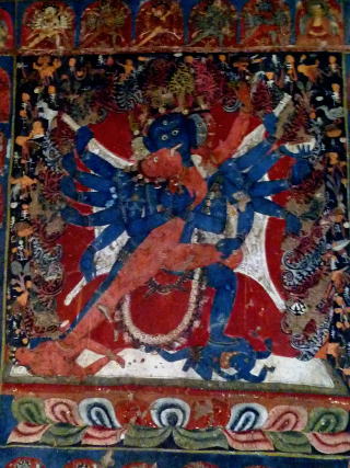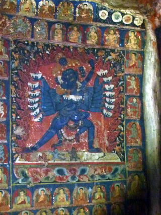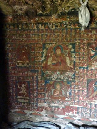 | ニダプク石窟 インド最北の地・ラダック 杏で有名なサスポル村の崖に 壁画で埋め尽くされた洞窟があります。 2014年8月訪問 石窟内の壁画 ![]()