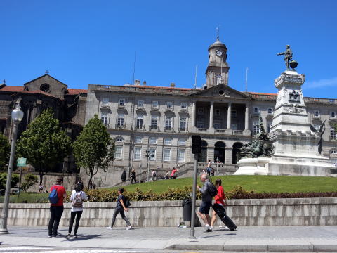 ドン・ルイス1世橋 ![]() 船着き場から、まずは上流へ。最初にドン・ルイス1世橋の下を通ります。 ヴィラ・ノヴァ・デ・ガイア側の丘の上に建つセーラ・ド・ピラール修道院の大きさにも驚きました。 ![]() 次に見えてくるのがインファンテ橋 自動車専用道路 ![]() インファンテ橋の先に2つの橋が見えて来ました。 ![]() ドナ・マリア・ピア橋とサン・ジョアン橋 ![]() 手前のドナ・マリア・ビア橋は1877年にエッフェルが建てた鉄橋 元々は鉄道専用橋でしたが、その後サン・ジョアン橋が鉄道橋の役目を引き継ぎました。 遠くに見えるのがクルーズで一番上流にあるフレイショ橋 ![]() 船はここで向きを変えて、今度は河口を目指します。 大きなクルーズ船が停まってました。1週間かけるドウロ川クルーズもあるそうです。 ![]() ドン・ルイス1世橋の近くまで戻って来ました。 ポルト旧市街を守っていた城壁が良く見えます。 ![]() 船から見るカイス・ダ・リベイラ ![]() 下流を目指します。カモメの群れ。風も出て来ました。 ![]() 川沿いにある大きな建物は税関とのこと。 ![]() 1番川下にあるアラビダ橋。自動車専用橋。 ![]() 水平線は大西洋でしょうか。河口が近い。 ![]() ここで向きを変えて船は戻ります。 船着き場に近づいた時、サン・フランシスコ教会とボルサ宮が見えました。 ![]() バイシャ地区 ポルトに3連泊で自由時間が多いツアーだったので、 サン・ベント駅の北側のバイシャ地区も散策してみました。 サン・ベント駅前のコングレガドス教会 ![]() 青いアズレージョが美しい。 信号を渡り、教会の前を左に進むとリベルダーデ広場 ![]() 立派な建物が並びます。広場奥の時計台のある建物が市庁舎。 広場の前を通り過ぎ、更に左に坂を上って行くと正面にクレリゴス教会。 ![]()