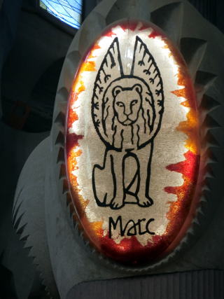 柱を飾るのは4人の福音記者のシンボル。翼のあるライオンはマルコ。