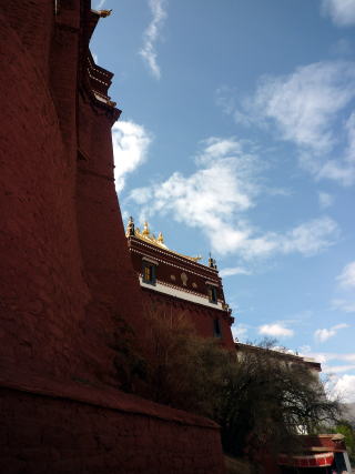 壁画を楽しんだ後、一生懸命階段を登ったら広場に出ました。 ここは東庭と呼ばれる場所。6階建ての建物が白宮です。 かってはこの広場で僧侶が踊り、それをダライ・ラマが上の黄金の窓から眺めたのだそうです。 ![]() 白宮