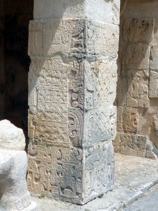 こちらは尼僧院の裏側。 チャーク神で埋め尽くされ、入口の上には大きな頭飾りを付けた人物像。 神官ともトウモロコシの神とも言われています。 ![]()